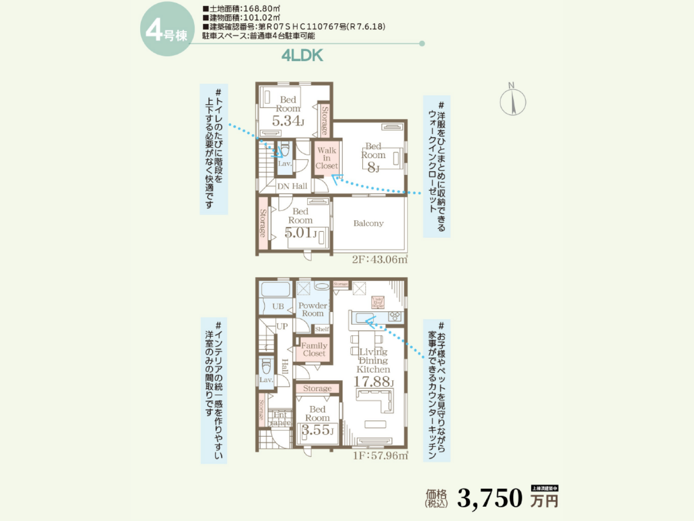 TVモニター付インターフォン/浴室乾燥機/温水洗浄便座/床下収納/24時間換気/人感センサー付照明/シャンプードレッサー/基礎パッキン工法/玄関収納/浄水器付きキッチン